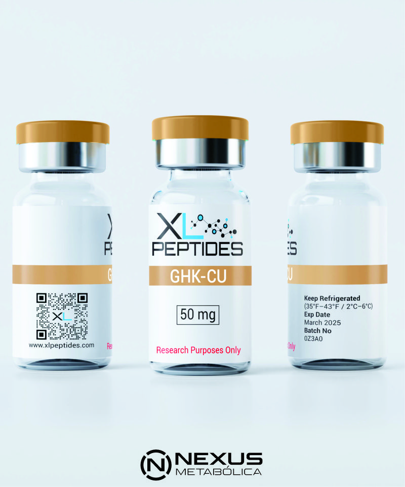 Este complexo se forma quando o tripeptídeo GHK quela o Cu(II). Devido à sua química de coordenação e motivo peptídico, pesquisadores o utilizam para investigar respostas associadas à matriz extracelular, interações peptídeo-metal e sinalização adjacente ao receptor em sistemas modelo.